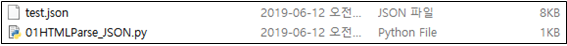json 파일이 저장될 경로를 따로 지정해주지 않았기 때문에 파이썬 파일이 저장되어 있는 경로에 json 파일이 저장된다. 저장된 test.json 파일을 확인하면 다음과 같다.