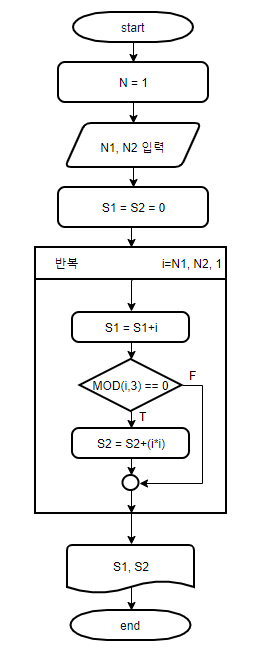 Q. 서로 다른 2개의 자연수를 받아 그 사이에 존재하는 자연수의 합과 3의 배수의 제곱의 합을 구하여 출력하는 알고리즘을 제시하라.