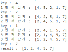 ∴ 결과 : [ 1, 2, 4, 5, 7 ]
