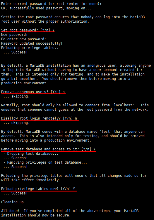 Reload privilege tables now? [Y/n] Y
